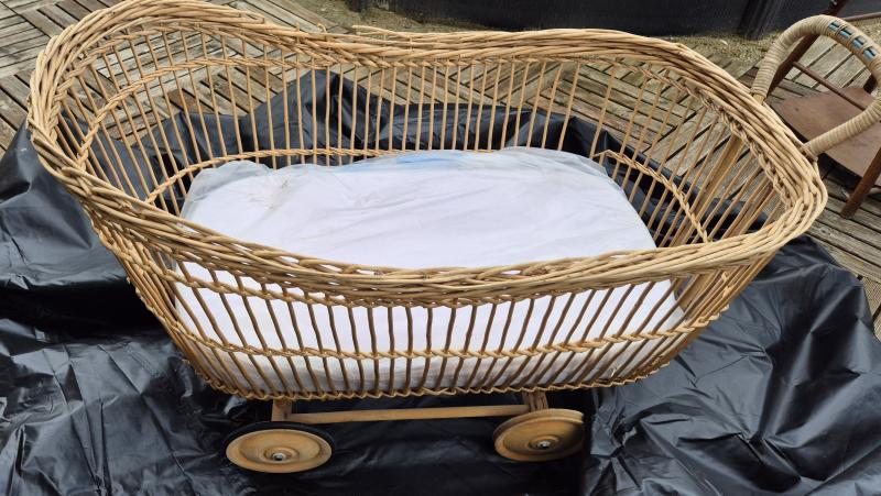 osier, posé sur roulettes, matelas fourni (ph)