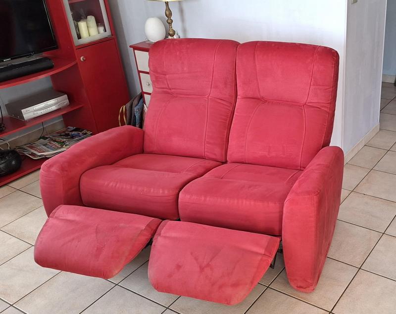 95x92x53 / 40 €, 1 canapé, 3pl, cinna, alcantara / 100 € + 1 fauteuil club assorti / 50 €