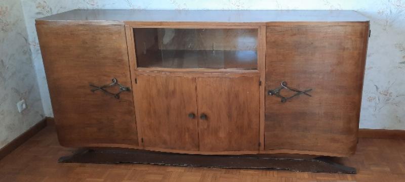 bas, bois, année 50, 200x97x50, avec vitrine + 1 table assortie, 150x100, possib de 2 rall 42cm chacune / 120 € le lot (ph)